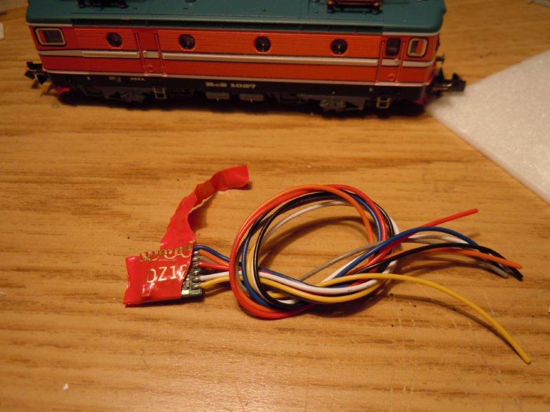 Man tager vad man haver, så jag använde en Digitrax DZ125 med tåtar (7st men den blå används inte här). Jag skalade av "plåstret" som satt runt den. Isolerade med betydligt tunnare tejp litet senare.